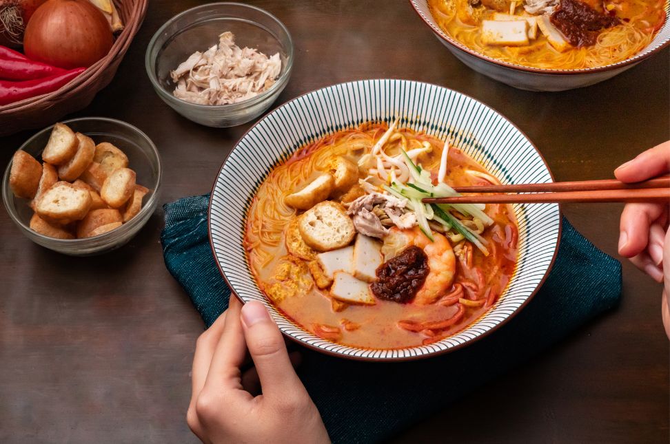 Peranakan food blends Chinese techniques with Malay spices. Dishes are complex, aromatic, and often labour-intensive. Expect flavours built slowly using herbs, coconut milk, and spice pastes.